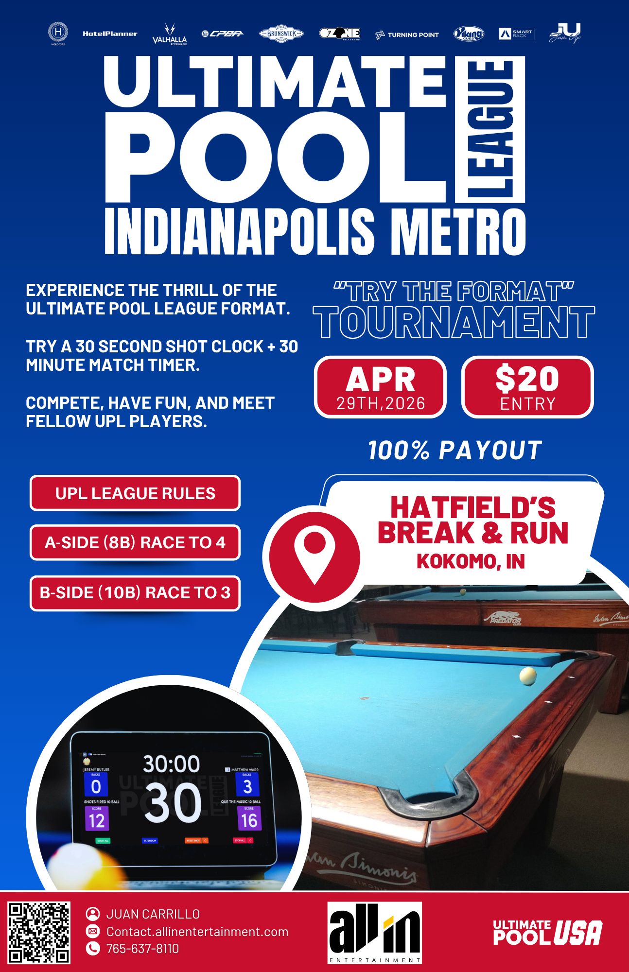 Ultimate Pool League Indianapolis Metro is part of the fastest-growing pool league format in the world. Developed in the UK and now taking America by storm, UPL is designed to give players more competition, more cash prizes, more community, and more fun.